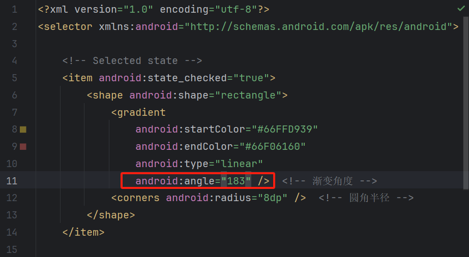 Android XML标签angle属性倍数问题