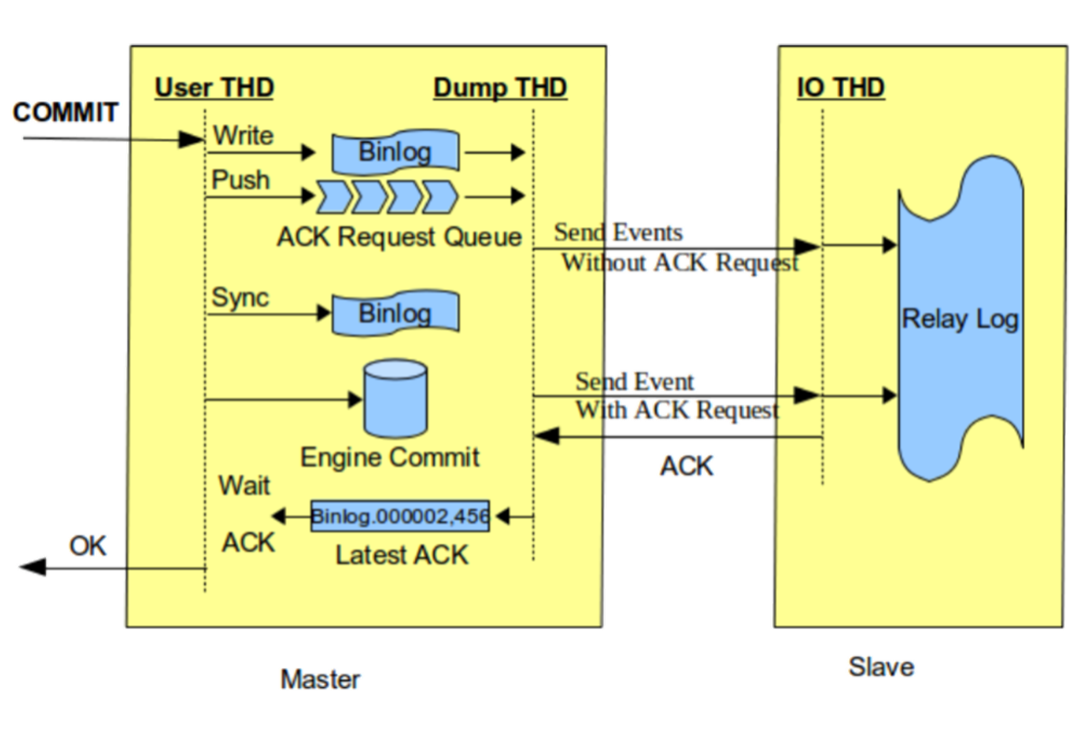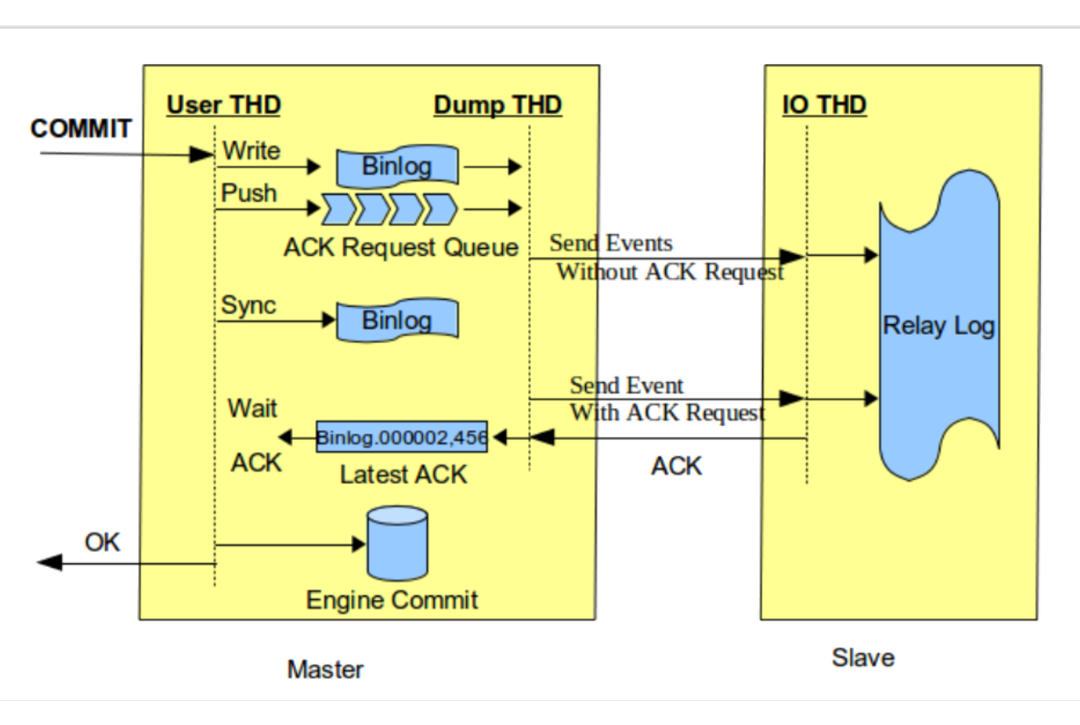 下图是 MySQL 官方对于半同步复制的时序图,主库等待从库写入 relay log 并返回 ACK 后才进行 Engine Commit。