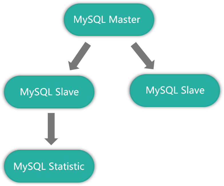 通用的架构还有树形复制,也叫级联复制。这类架构通常适用于数据访问策略分层,例如 MySQL Master 和 MySQL Slave 参与线上业务访问及高可用切换,MySQL Statistic 节点提供离线查询、报表慢查和非线上业务访问,如下图。