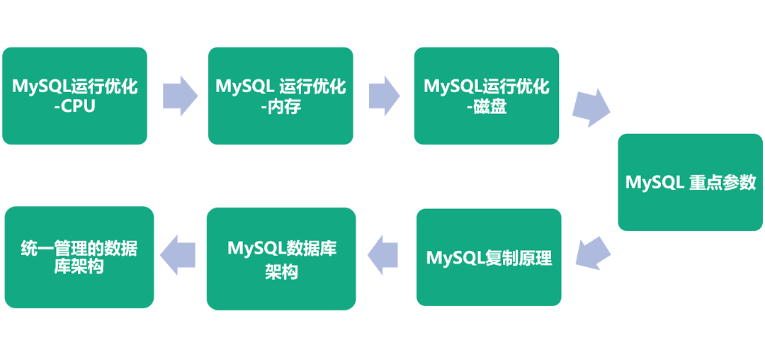 首先我们对数据库服务器硬件层次从CPU、内存、磁盘等运行环境进行了优化。然后学习了 MySQL 参数如何配置,重点参数如何调优。之后又学习了 MySQL 异步复制和半同步复制的原理。最后讲解了以 MySQL 复制为基础的主从复制架构、双主复制架构、树形复制架构及环形复制架构和使用场景。简单拓展了一下如何统一管理不同的数据库架构。