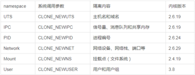 namespace:负责隔离一个独立的容器所必须具备的资源