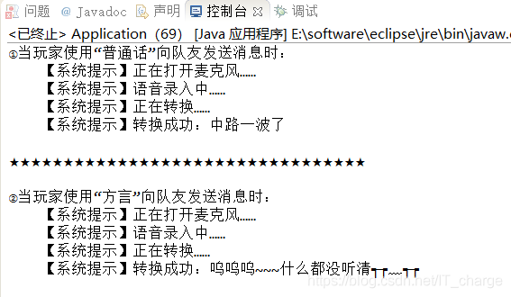 System.out.println("①当玩家使用“普通话”向队友发送消息时:");