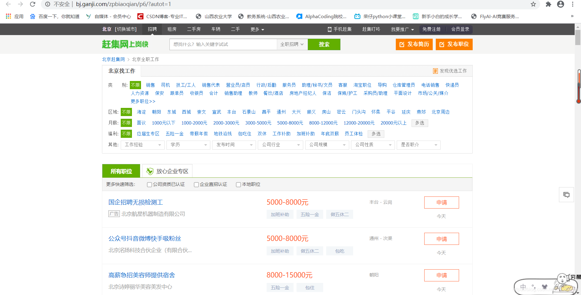 接下来将介绍如何爬取赶集网网站发布的招聘信息并存处置本地 MySQL 数据库中。