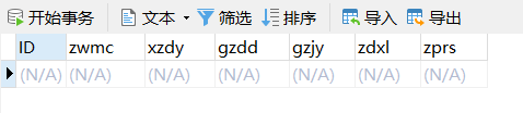 当表创建好之后,单击打开表按钮可以查看当前表中所包含的数据。因为该表目前没有数据,所以显示为空。