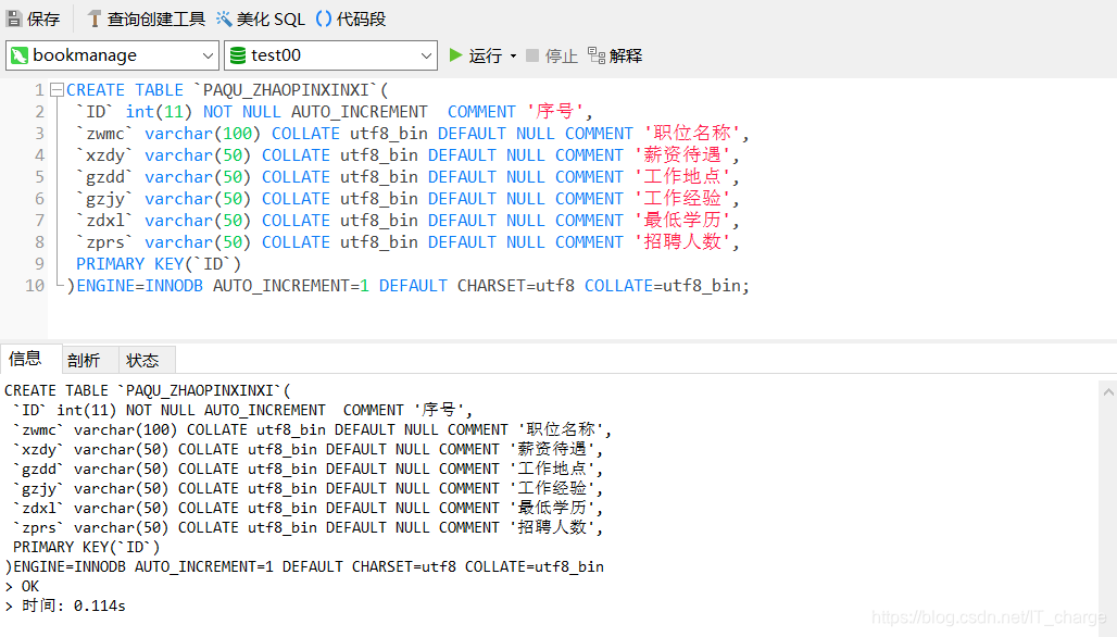 - 利用 Navicat for MySQL 工具创建智联招聘网站对应的数据库和表;