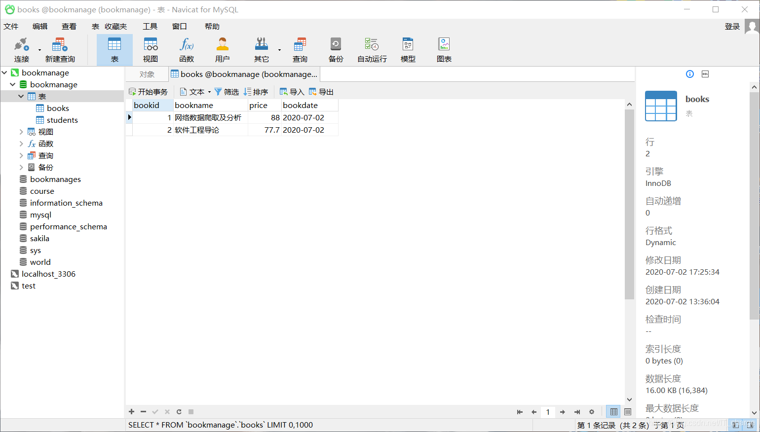 具体而言,我们可以看到上一篇文章创建的两个表“books”和“students”。很显然,比上一篇文章介绍的 MySQL 更加方便。