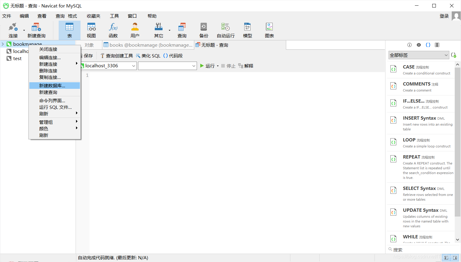 第二种是右击鼠标,在弹出的快捷菜单中选择“新建数据库”: