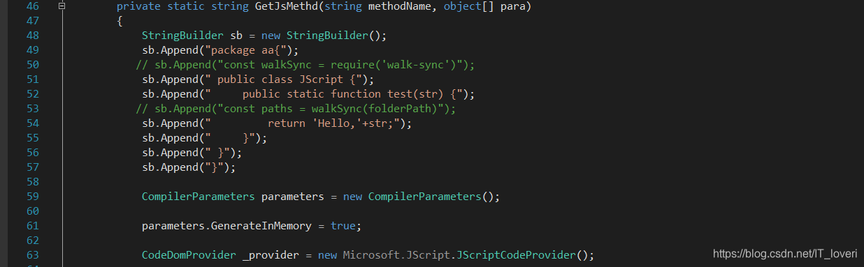 简单将自己操作的部分就是将js代码写入到StringBuilder中,然后通过Microsoft.JScript.JScriptCodeProvider()去解析js代码,其它的代码就照猫画虎就可以。