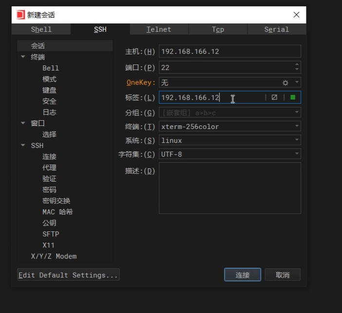 再回到Wind Term在会话里输入IP地址,点击连接。