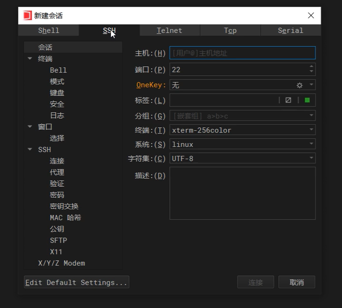 打开Wind Term,新建会话,选择SSH。