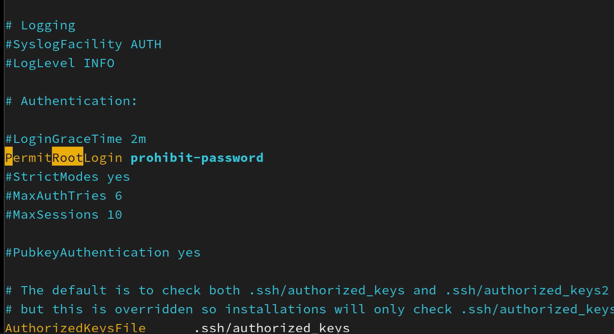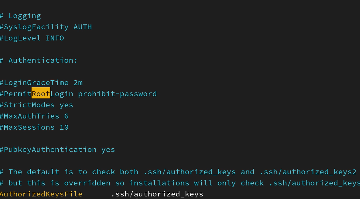 按下Backspace键删除至PermitRootLogin,输入yes,按下Esc键取消插入