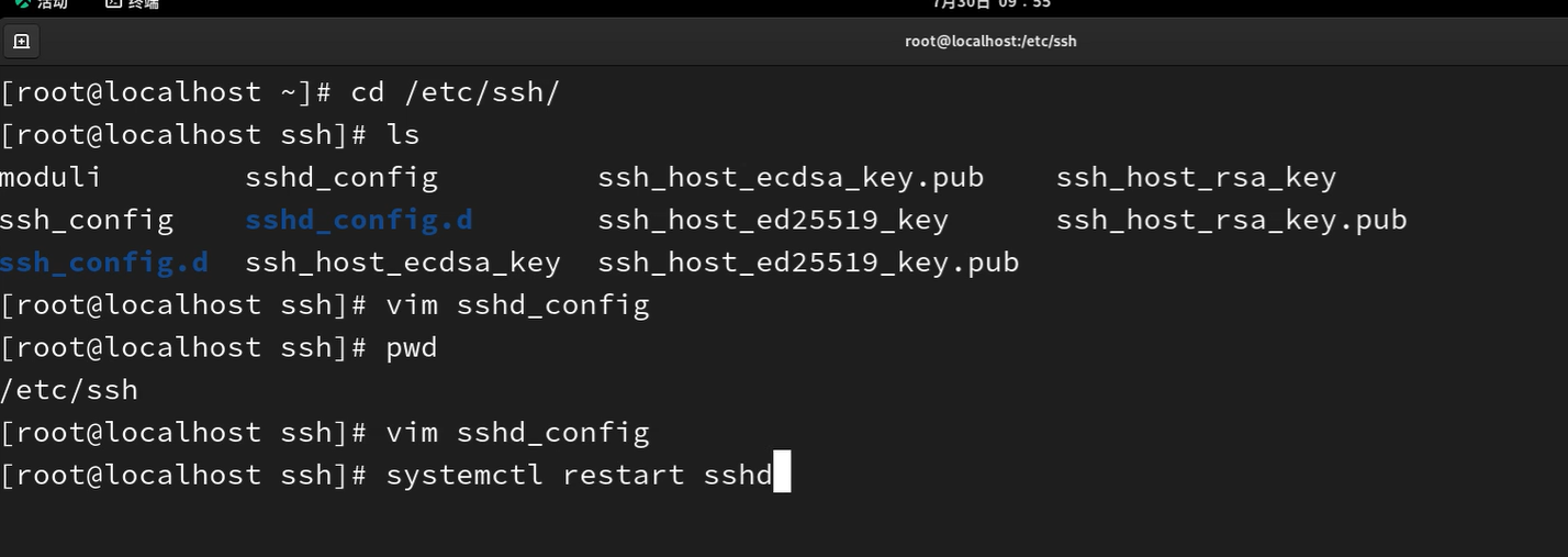 输入命令:systemctl restart sshd