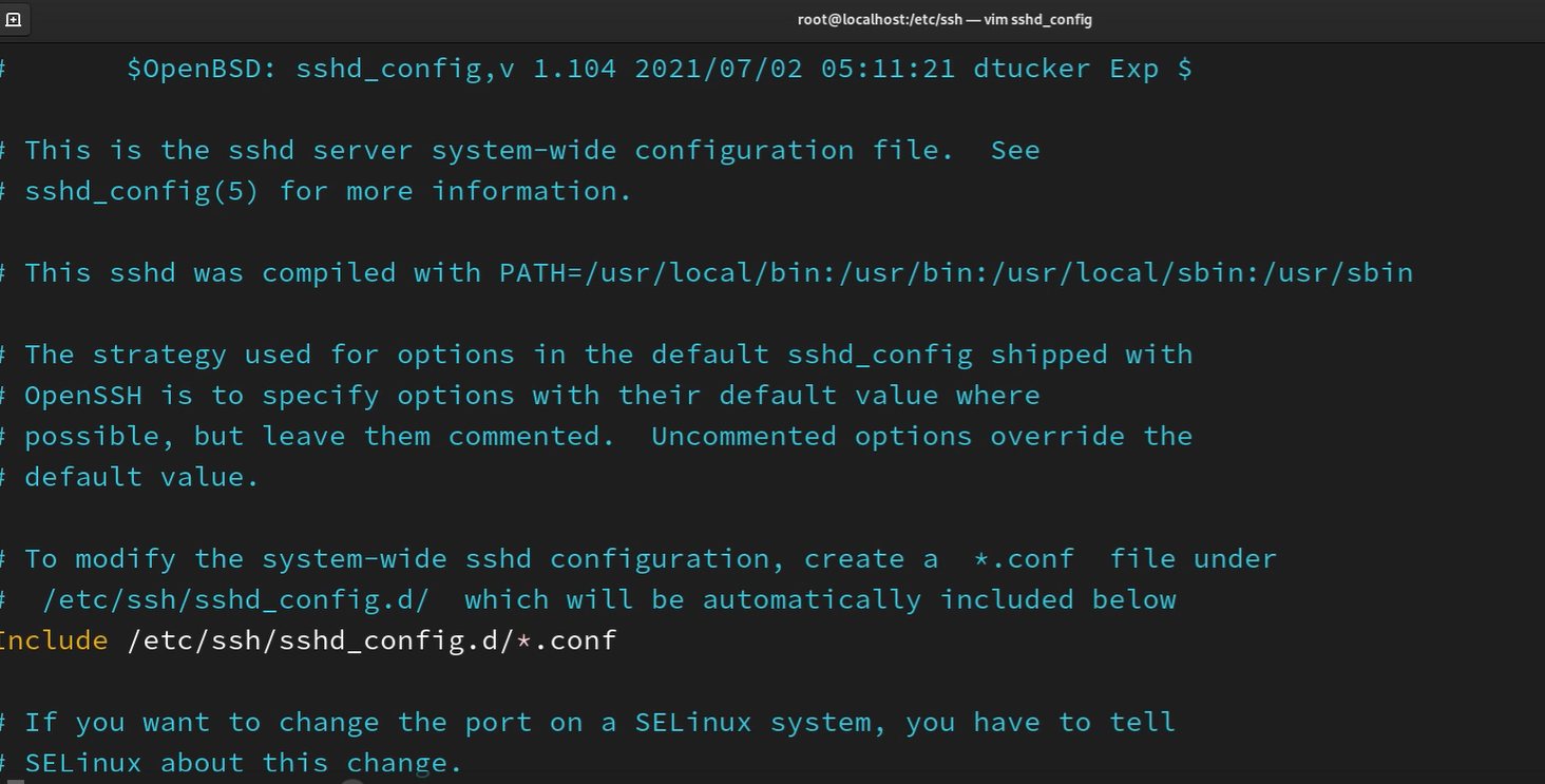 输入命令:vim sshd_config