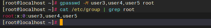 | -M, --members USER,... | 设置组 GROUP 的成员列表,批量添加,覆盖原有成员 |