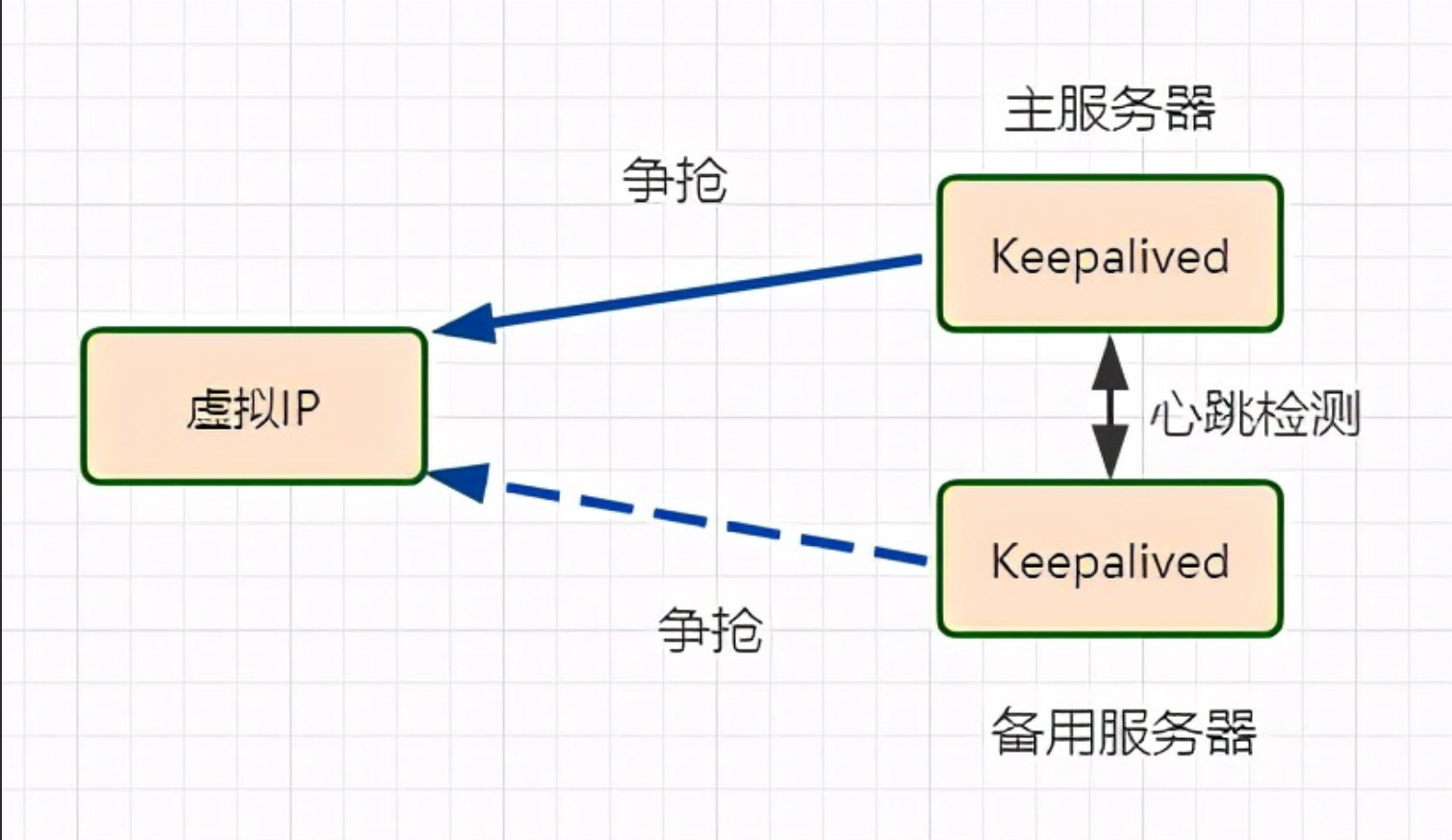 keepalived采用VRRP(virtual router redundancy protocol),虚拟路由冗余协议,以软件的形式实现服务器热备功能。通常情况下是将两台linux服务器组成一个热备组(master-backup),同一时间热备组内只有一台主服务器(master)提供服务,同时master会虚拟出一个共用IP地址(VIP),这个VIP只存在master上并对外提供服务。如果keepalived检测到master宕机或服务故障,备服务器(backup)会自动接管VIP成为master,keepalived并将master从热备组移除,当master恢复后,会自动加入到热备组,默认再抢占成为master,起到故障转移功能。