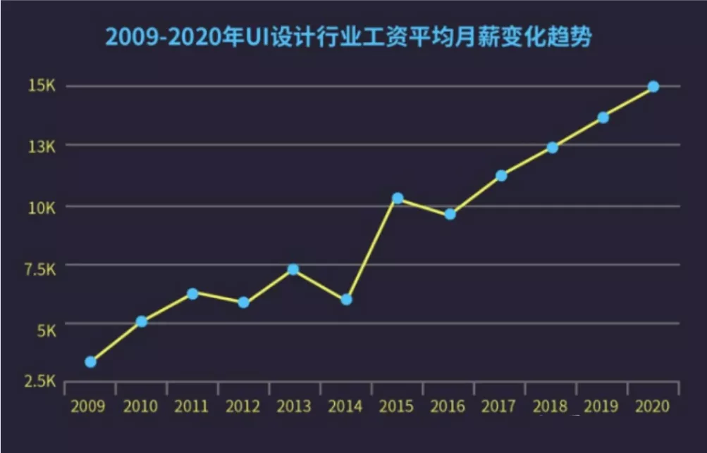 UI设计师的在一线的平均薪资已经达到了10000以上的水平,也就是100个UI设计师里面有60个UI设计师月薪是1万以上的。