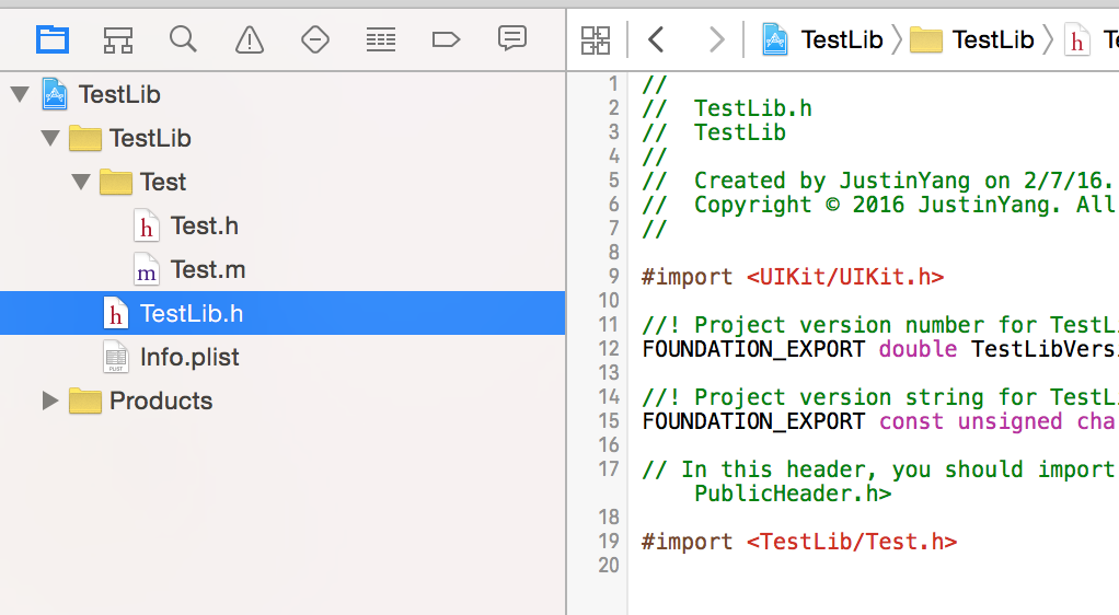 TestLib文件夹下新建您的库工程,我使用的是新建framework,如何新建framework,请参看这篇教程(当然您可以创建其他xcode工程)