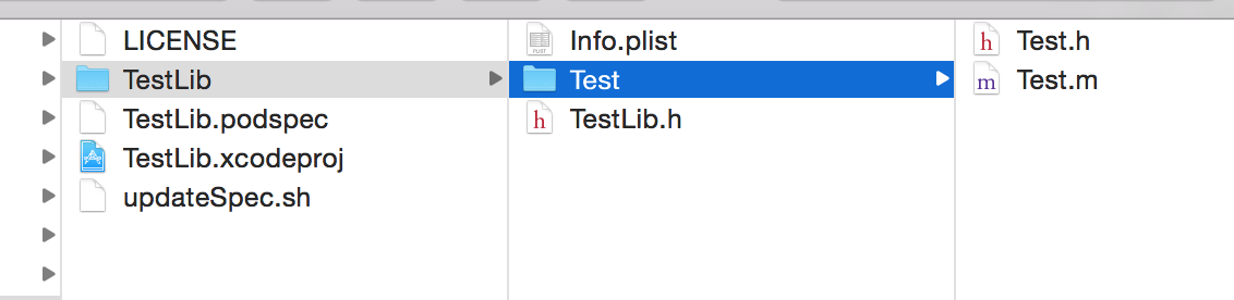 Terminal进入TestLib目录,执行pod spec create TestLib,将在TestLib目录下创建TestLib.podspec文件。