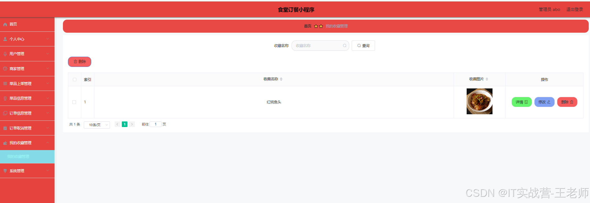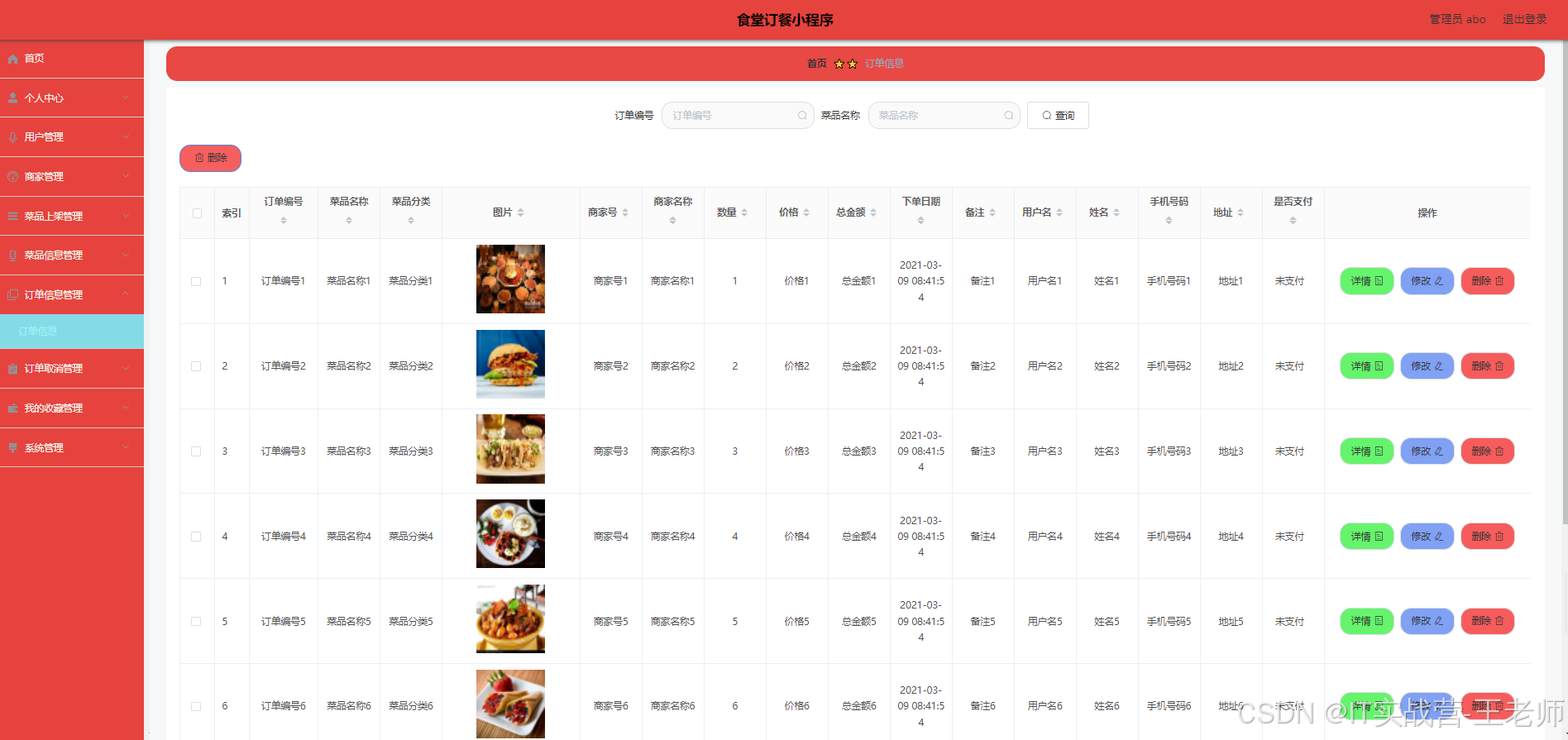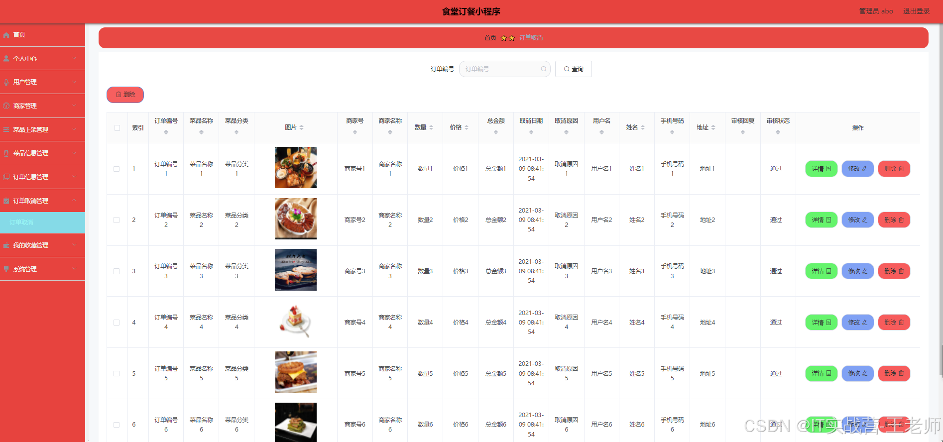 食堂订餐小程序被用户普遍使用,为方便用户能够可以随时进行食堂订餐小程序的数据信息管理,