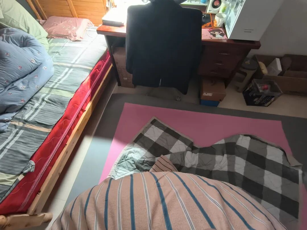 房间太小了,1.2m 的床。睡觉他直接把我床霸占了,笑死。睡午觉我还是在工学椅上睡的,我都忘了自己有没有睡着了。感觉像是睡着了,又像是没睡着。
