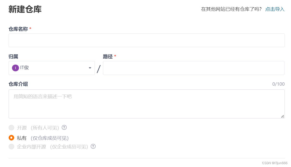 新建仓库: