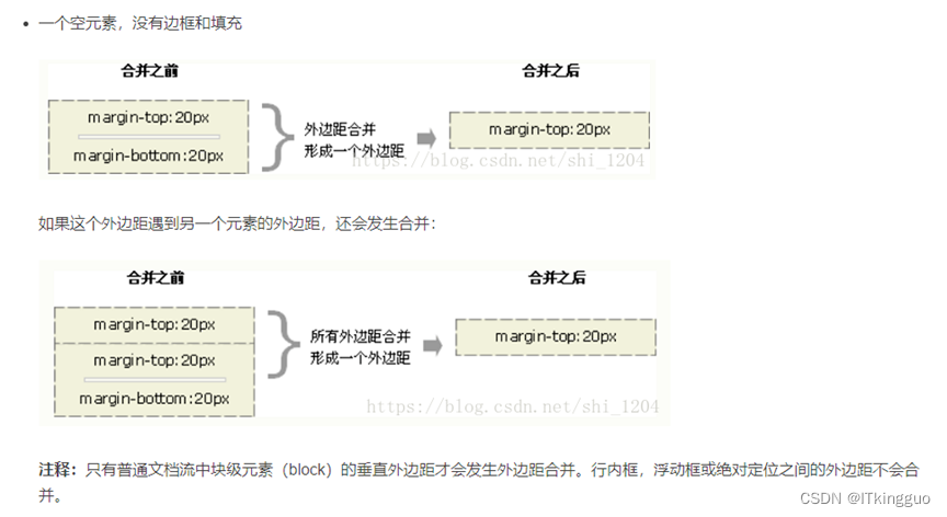 所谓的外边距合并就是,当两个垂直外边距相遇时,它们将形成一个外边距。合并的外边距的高度等于两个发生合并的外边距的高度中的较大者。