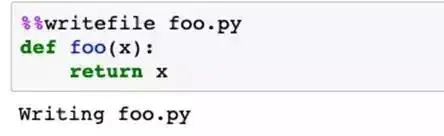 %% writefile将执行单元的内容写入文件。下面的这段代码将写入名为foo.py的文件并保存在当前目录中。