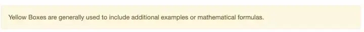 Example: Yellow Boxes are generally used to include additional examples or mathematical formulas.