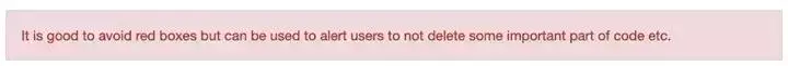 It is good to avoid red boxes but can be used to alert users to not delete some important part of code etc.