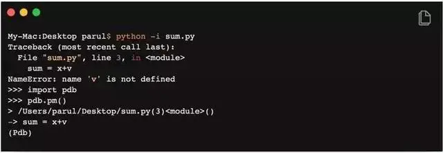 其次,我们可以轻松地调用python调试器,因为我们仍然在编译器中: