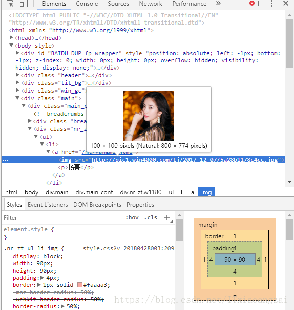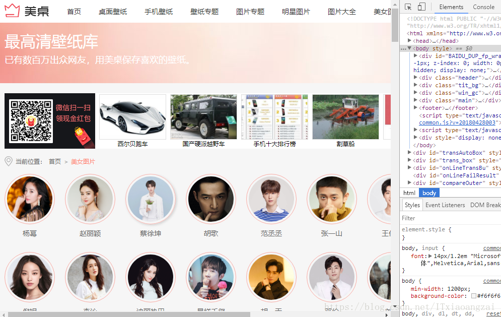 然后我们就是获取标签img,获取标签页面元素可以通过正则表达式和BeautifulSoup方便的类库来实现: