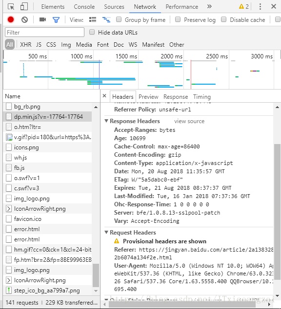 一:我们先要把网站上面的html请求数据拉取下来,看看请求返回的内容是什么。我们就需要用到网络请求,这里使用简单的urllib.request来实现,由于有的网站请求,可能设置了验证,我们需要模拟请求头,打开浏览器,f12查看network,可以看到我们网络请求的请求头,主要是User-Agent: