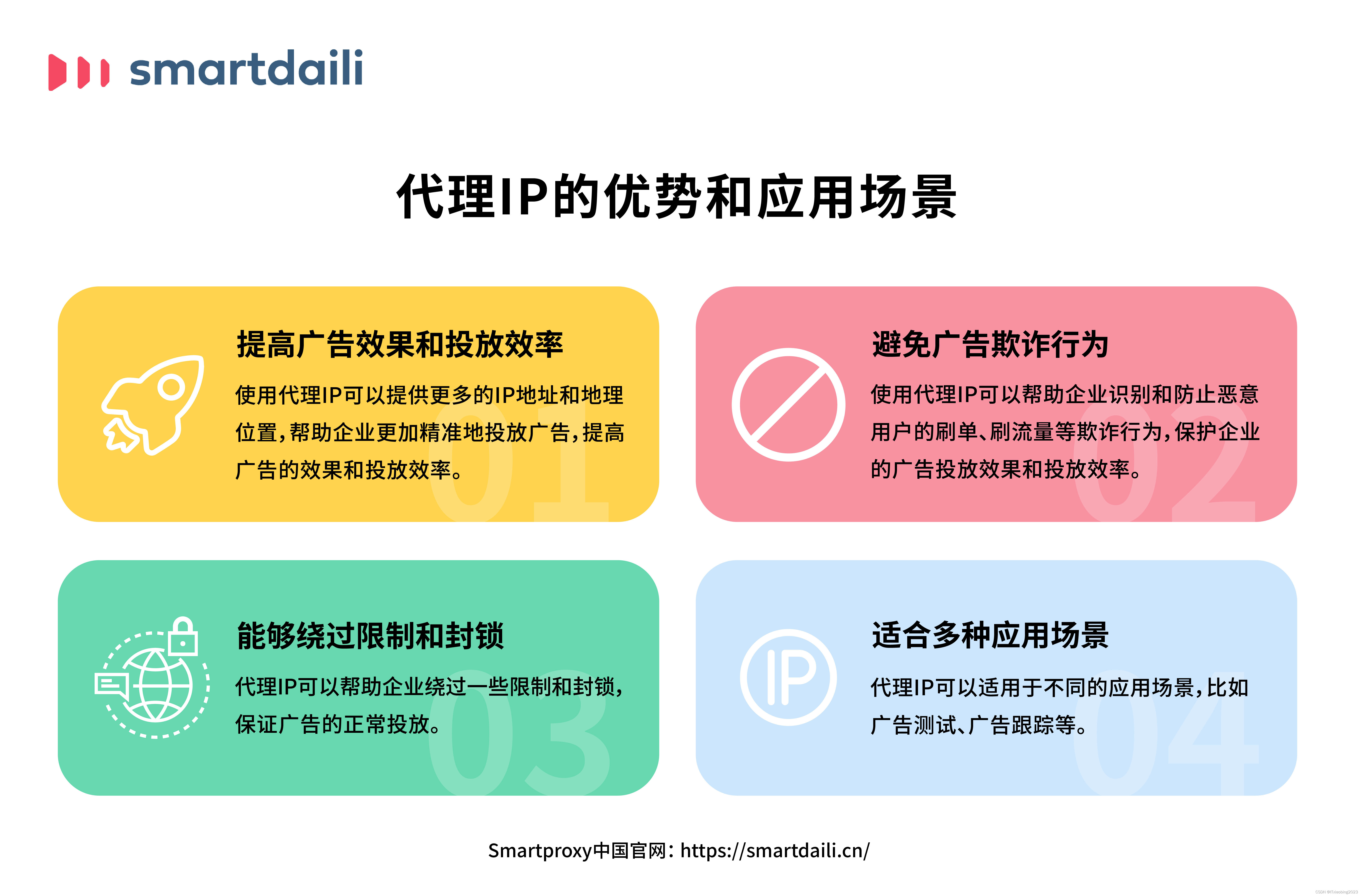 在广告管理和自动化中,代理IP的应用越来越受到企业的关注和重视。通过使用代理IP,企业可以轻松实现全球范围内的广告投放需求,提高广告的效果和投放效率,同时保护广告投放效果和投放效率免受欺诈行为的影响。因此,选择适合自己的代理IP服务,成为了广告管理和自动化的重要环节之一。要了解更多关于IP代理发布的信息,请访问Smartproxy中国官方网站。