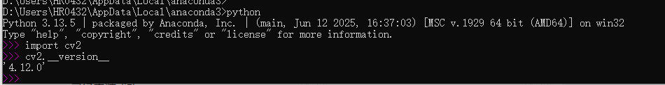 需要注意:版本号一定要和刚刚安装的opencv-python版本号一致