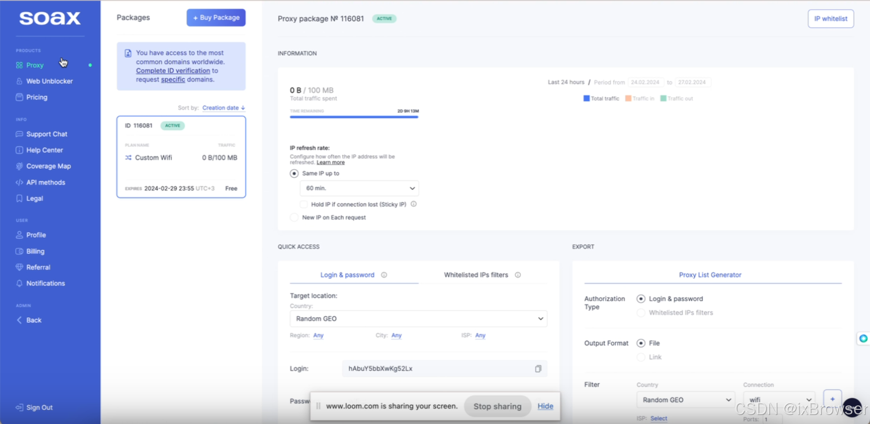 步骤3:在SOAX工作台中购买代理并获取代理信息;