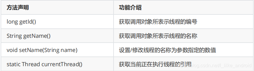 System.out.println("子线程编号是:"+getId()+"; 名称是:"+getName()); //子线程编号是:14; 名称是:zhangfei