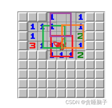 - 在坐标x,y处不为雷:mine[x][y] != 1(也就是踩雷的情况)