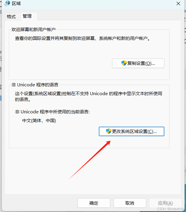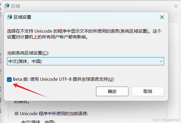 在确保 MinGW正确安装且终端编码为 UTF-8后输出仍为中文乱码(英文输出仍为正常,只是中文会变成乱码),可能原因是电脑未勾选 Beta: 使用 Unicode UTF-8 提供全球语言支持。具体解决方案如下: 1、打开控制面板并点击时钟和区域: 2、点击区域: 3、点击管理: 4、点击更改系统区域设置: 5、勾选Beta版: 使用 Unicode UTF-8 提供全球语言支持,并重启电脑: 这时候重新打开Visual Studio Code运行程序,就会正常显示中文啦!