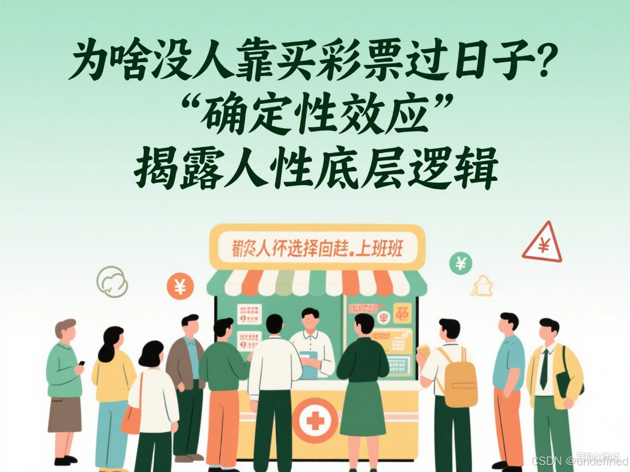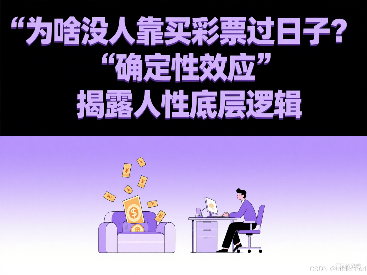 “人在获利时厌恶风险,损失时偏爱风险”—— 买彩票时高估中奖(获利时偏爱风险),选工作时选稳定(获利时厌恶风险),本质是 **“确定性给人安全感,不确定性让人焦虑”**(行为经济学:78% 的决策偏差源于确定性效应 )。