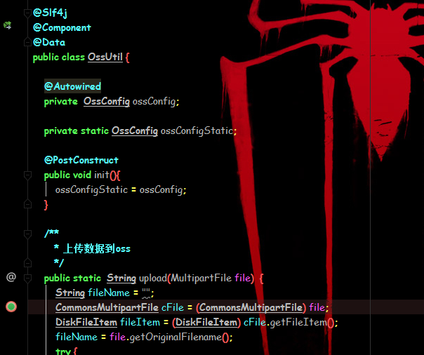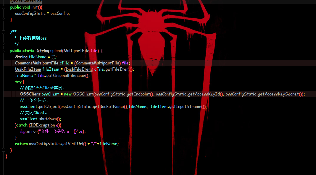 在接收文件的时候,可能真正上传的数据是流数据的,所以在MultipartFile转File的时候就需要CommonsMultipartFile来实现强转.然后通过getFileItem()来获取一个磁盘缓存文件DiskFileItem(也需要强转一下).然后通过fileItem.getInputStream()获取数据流就可以通过流上传到想要的位置了.我使用的这个是阿里云的oss数据存储服务器.