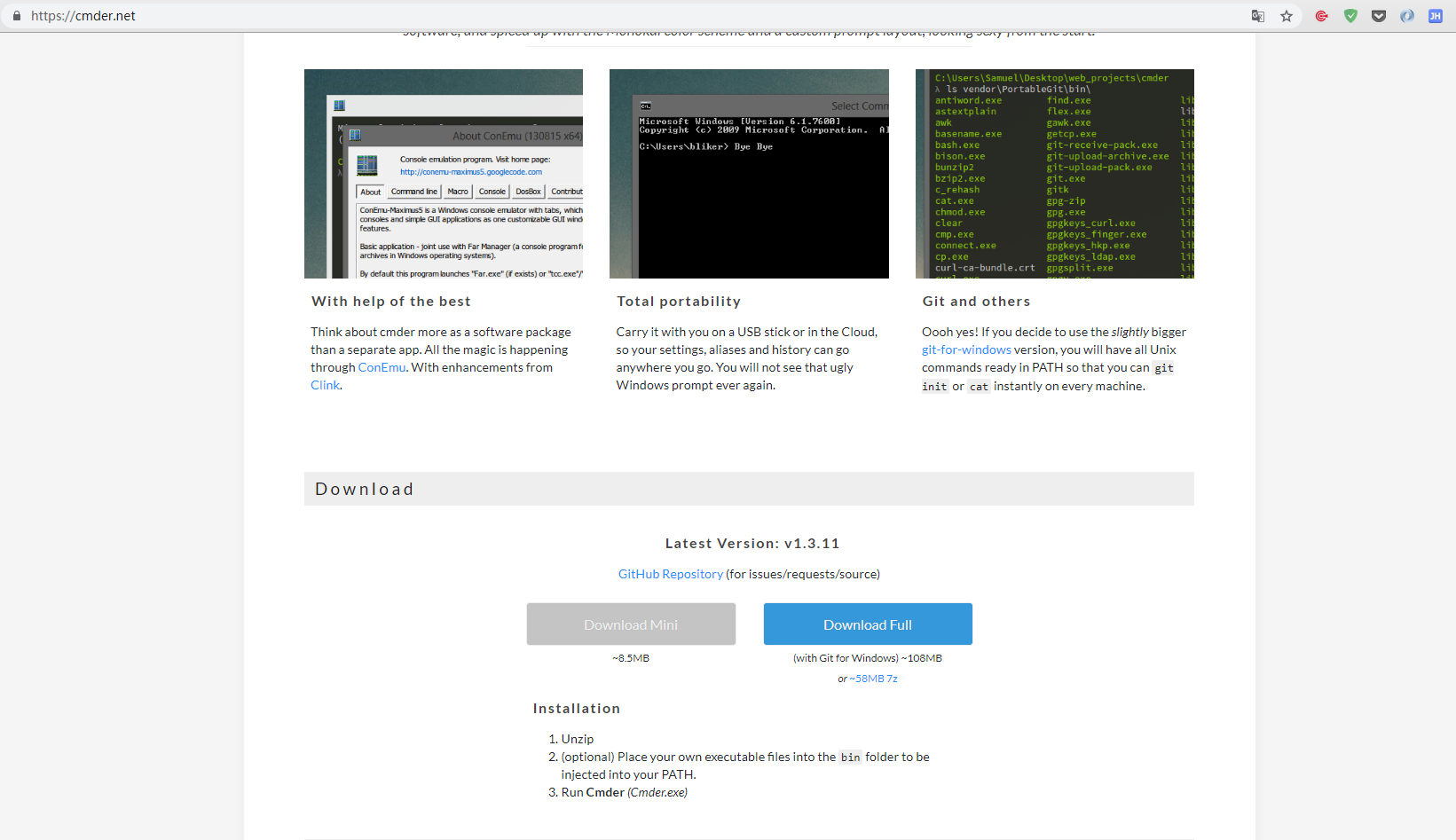 在windows中使用类似linux的终端---cmder 作为一名程序员,很多时候都要远程连接服务器进行工作.但是作为一名windows工作者.很多远程命令都无法使用自带的cmd进行操作,后来我找到了cmder. 轻巧,算是这个最大的优点.但我还是喜欢全一点的.该工具集成了很多好用的liunx命令,可以让我更好的完成远程操作.