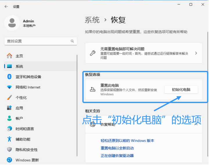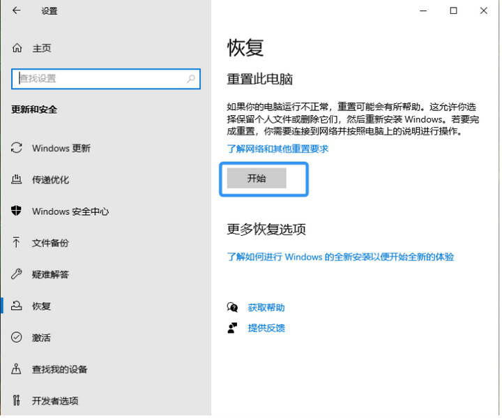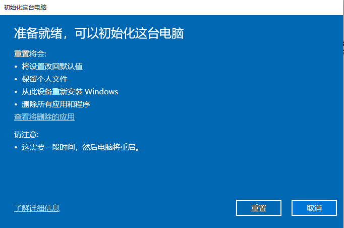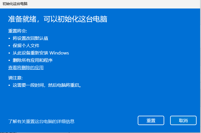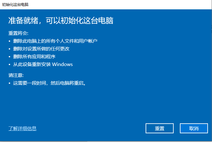 第一种情况:电脑能正常开机,但是系统非常卡顿或单纯的想重装系统,想不通过任何第三方的 WindowsPE(也就是一种小型操作系统)重新安装。(在重置时要拔掉网线)