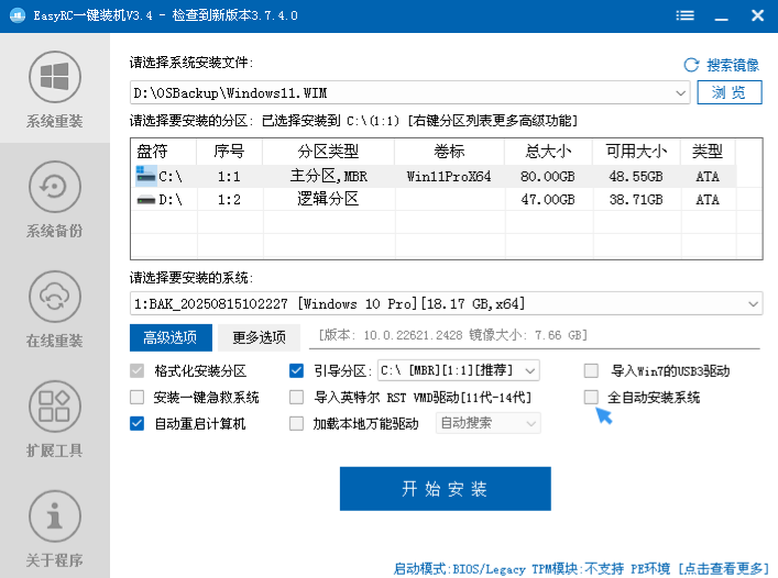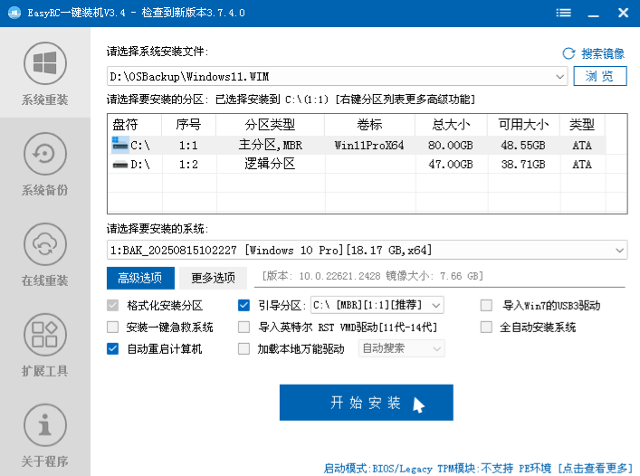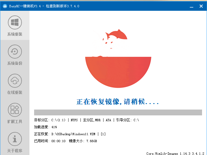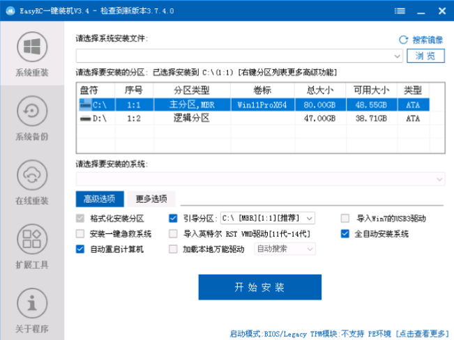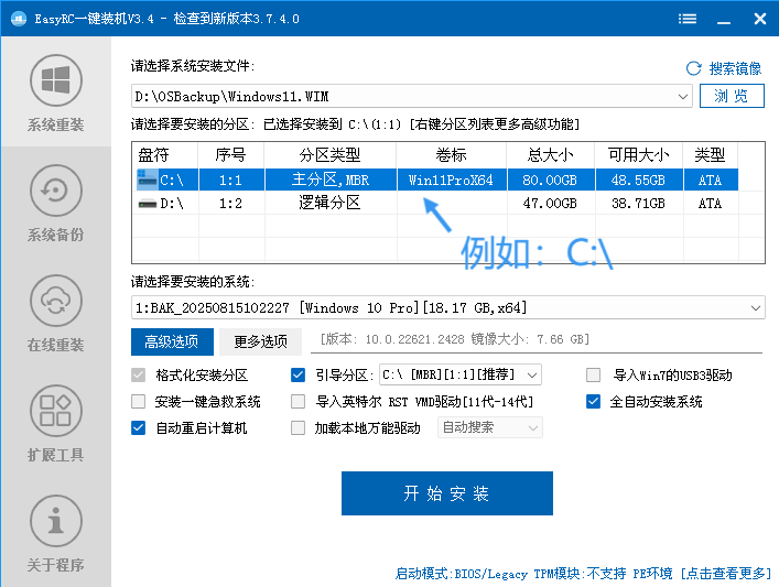 1.打开桌面上的”EasyRC一键重装“的快捷方式(若其他PE可以去FirPE官网下载该软件,链接会在文章下方)。