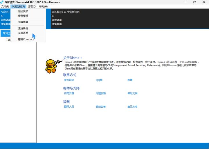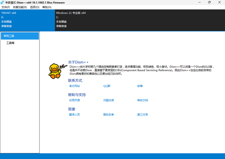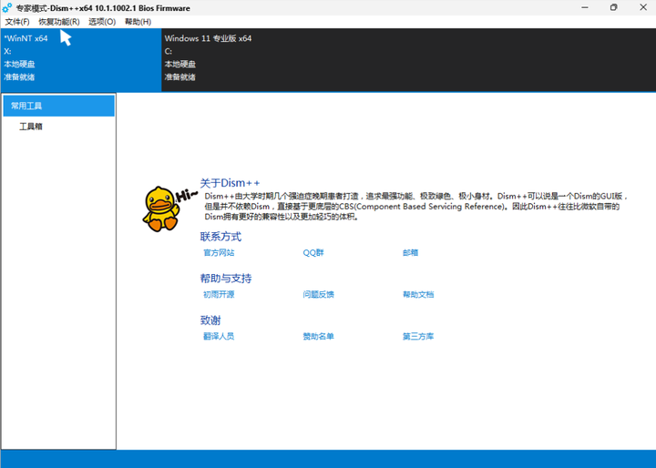 2.打开Dism++即可适用自带此软件的PE(一般在桌面或者开始菜单的程序项找到)(打开前点击“同意”的选项)。