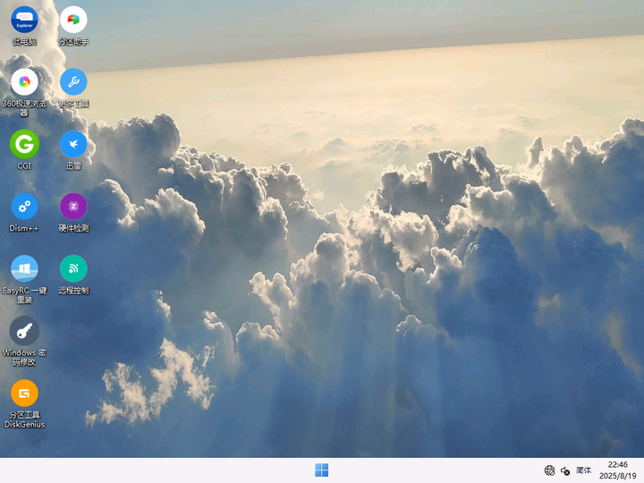 4.进入到该界面后,等待进入PE。(有些人的界面是黑白的引导界面,只需要等待进入即可)