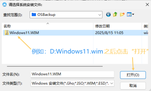 3.2打开你所下载此镜像文件的存储目录中的安装文件(以wim格式命名的文件,文件名以实际情况为准)。
