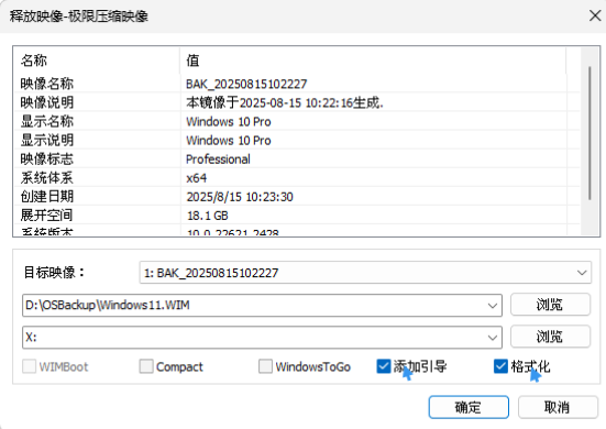 4.在点击“确定”的选项之前,记得点击“添加引导”与“格式化”的两个选项。