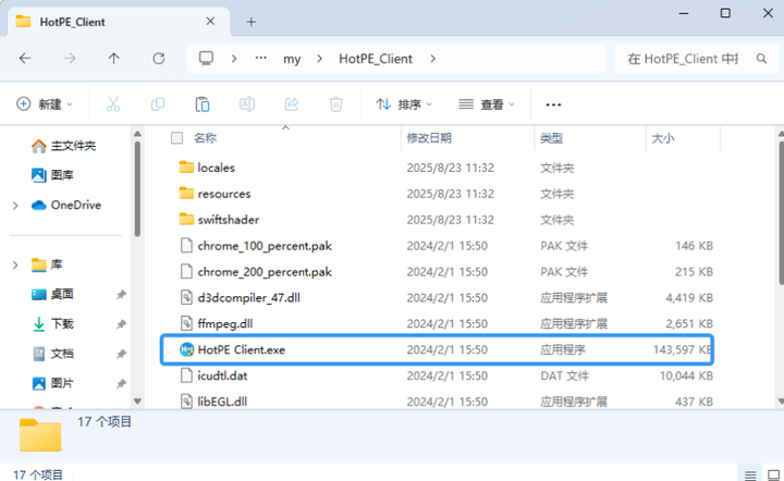 2.打开复制出来的文件夹内的"HotPE Client"的程序。