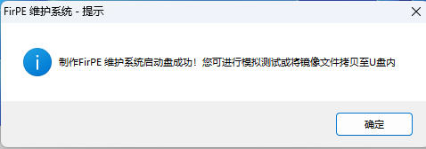 5.在制作完成的界面中点击“确定”的按钮,你的U盘就制作完成了。(这时候可以关闭此程序了)