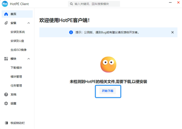 4.在此程序的首页点击“开始下载”的选项。